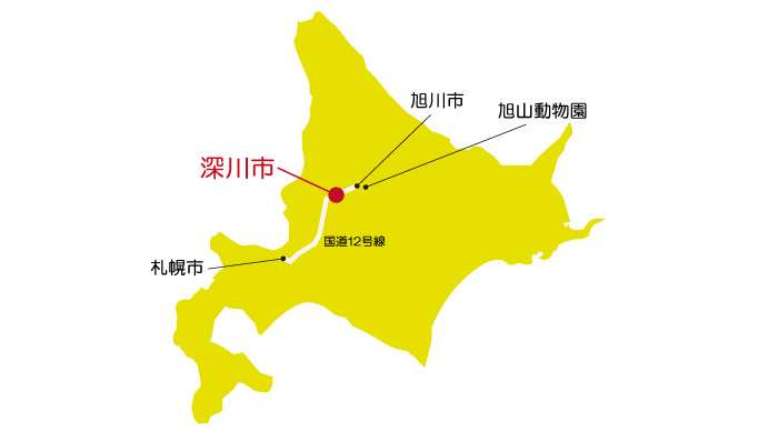 深川市は大都市の札幌と旭川市の間に位置しています。